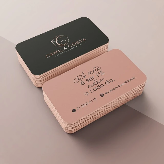 Quantidade : 1.000 und Papel / Material: Couchê 300g Cores: 4X4 Tamanho final: 90x50mm Tamanho com Sangria: 92x52mm Prazo de produção: 10 dias úteis Acabamentos: CANTOS ARREDONDADOS, FACA PADRÃO, VERNIZ TOTAL